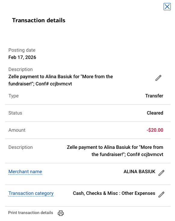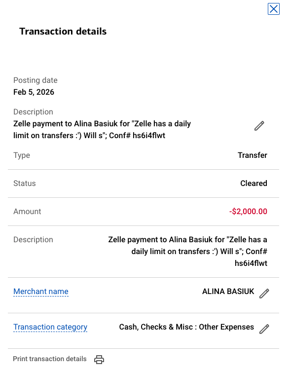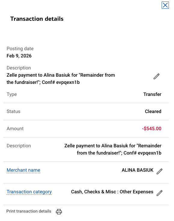 All funds have been transferred to the Robinson-Basiuk family.